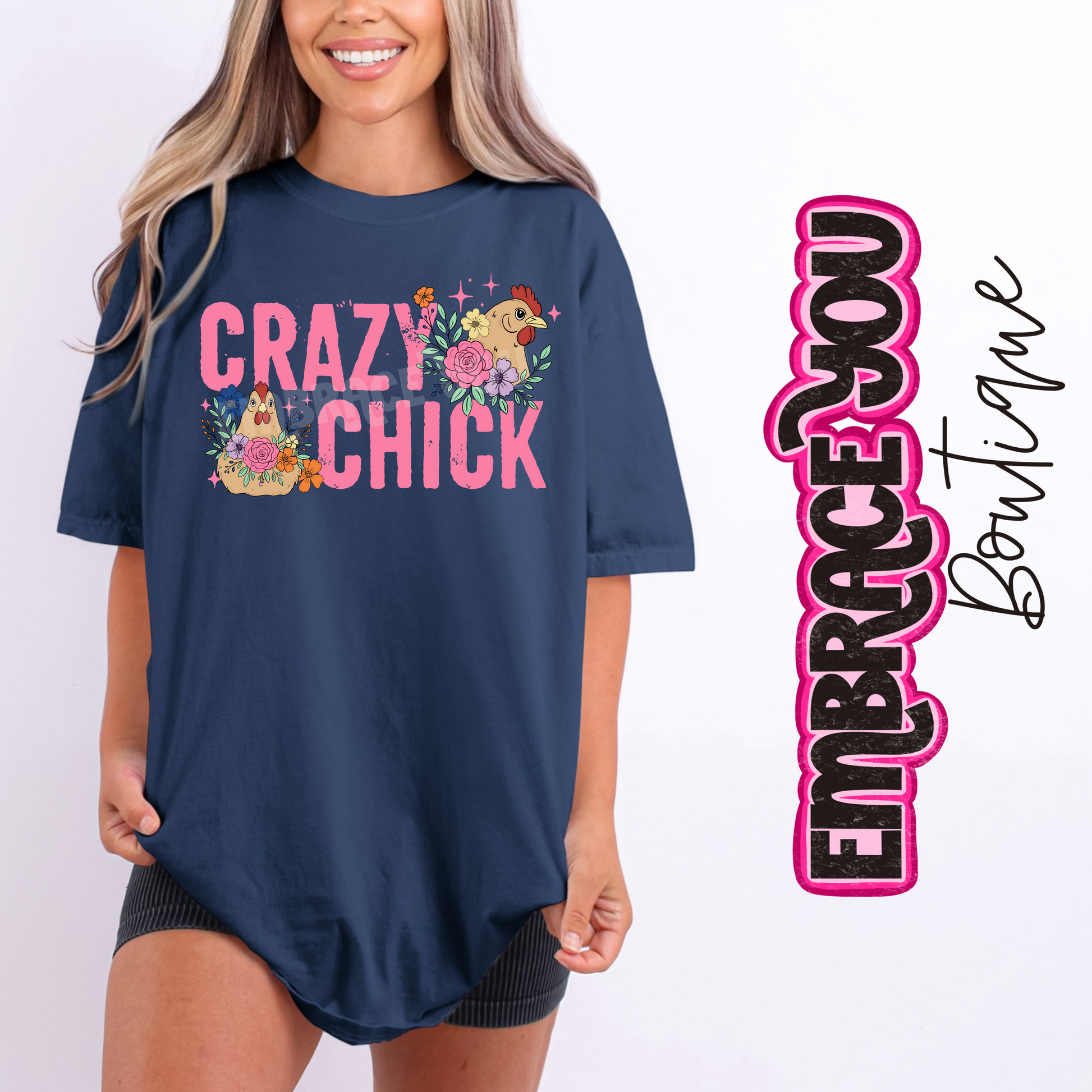 Show off your love for chickens with the Crazy Chick Graphic Tee! Made on soft Comfort Colors tees, this playful tee offers all-day comfort and a fun way to express your quirky side. Perfect for chicken lovers who want to add some personality to their wardrobe. Please allow 1-2 weeks for turnaround time.