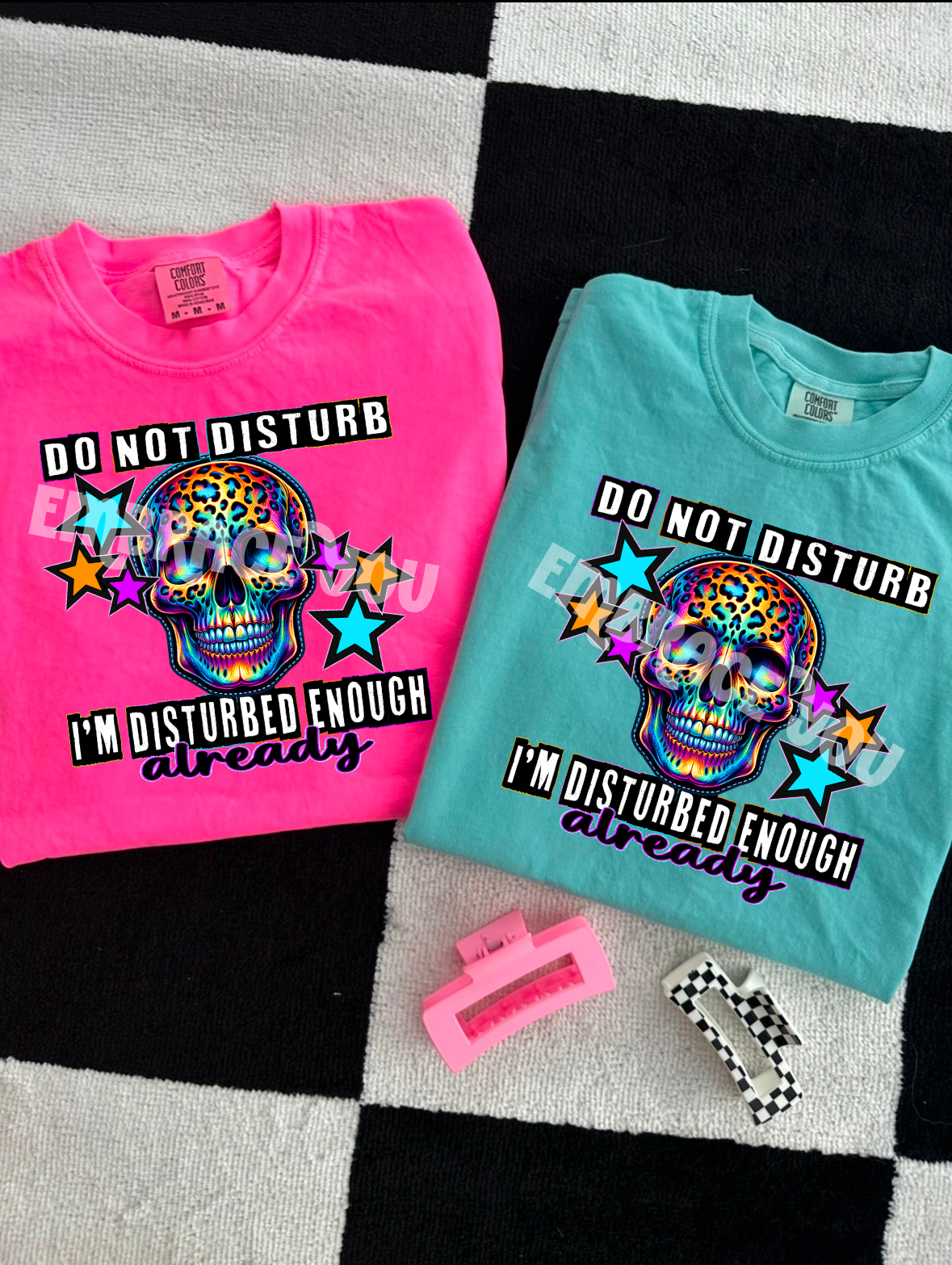 This tee is skull-a-riffic! With Lisa Frank vibes and a bold "Do Not Disturb" graphic, it's perfect for those who don't take themselves too seriously. Made with comfort colors and a quick turnaround time, this tee is a must-have for any laid-back, quirky individual.