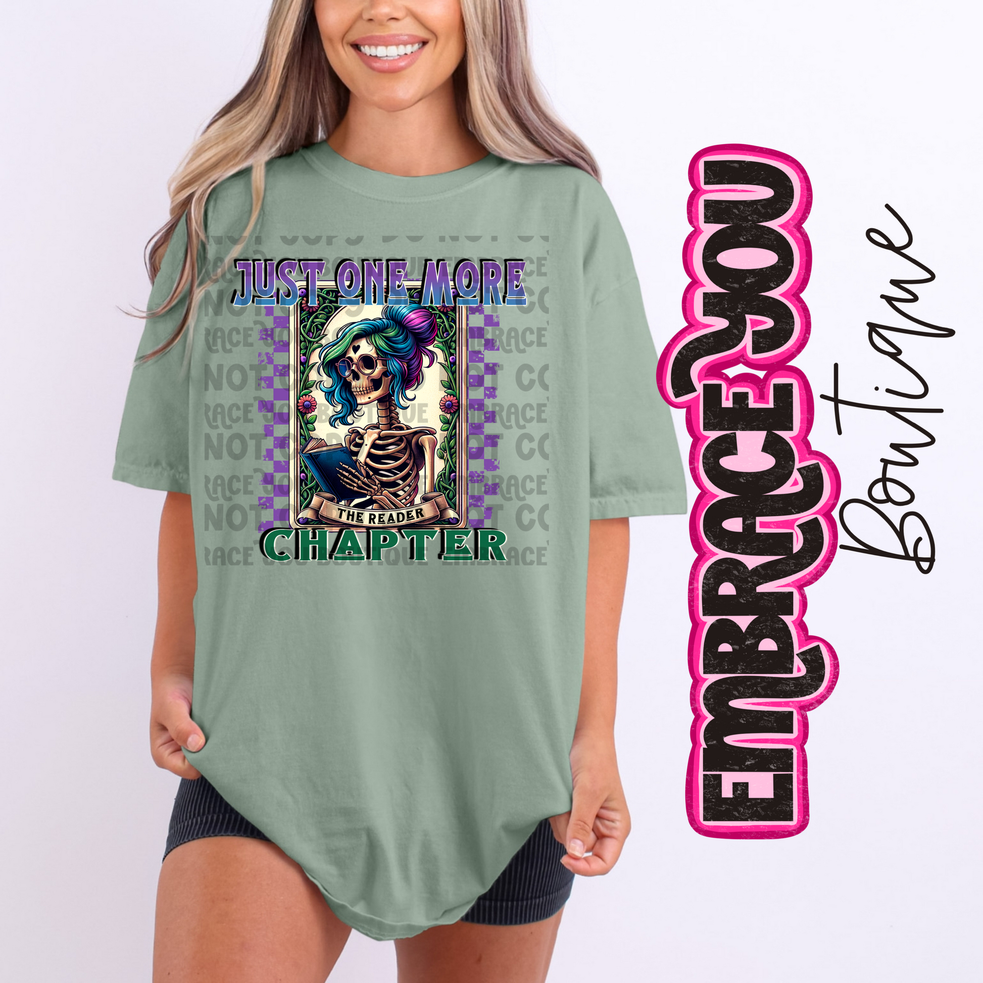 Indulge your inner bookworm (reader) with our Just One More Chapter Tarot Card Graphic Tee. This shirt is perfect for cozy reading sessions. With a 1-2 week turnaround time, you'll have plenty of time for "just one more chapter."