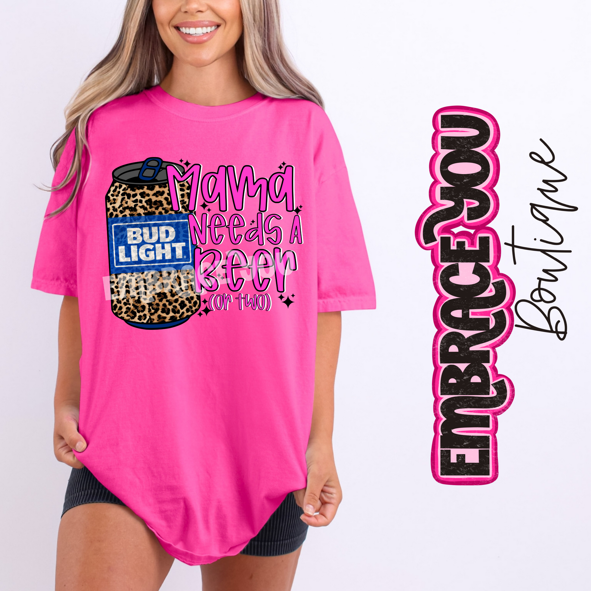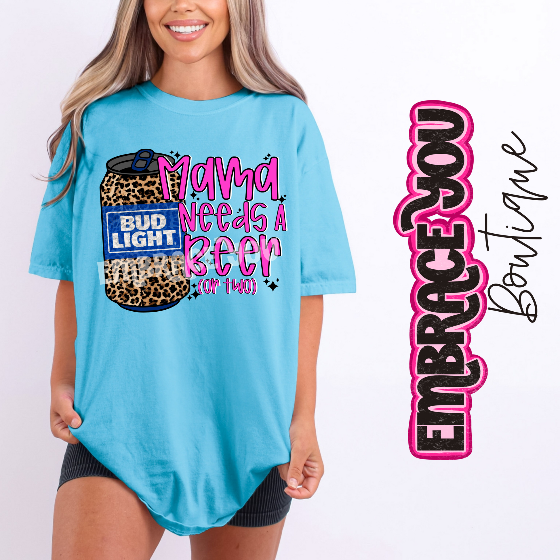 Show off your fun side with the Mama Needs A Beer BL Graphic Tee. Featuring a bold Bud Light logo paired with a trendy cheetah print, this playful tee is perfect for moms who know how to unwind in style. Made for comfort and casual vibes, it’s ready to ship in 1-2 weeks—just in time for your next laid-back hangout.