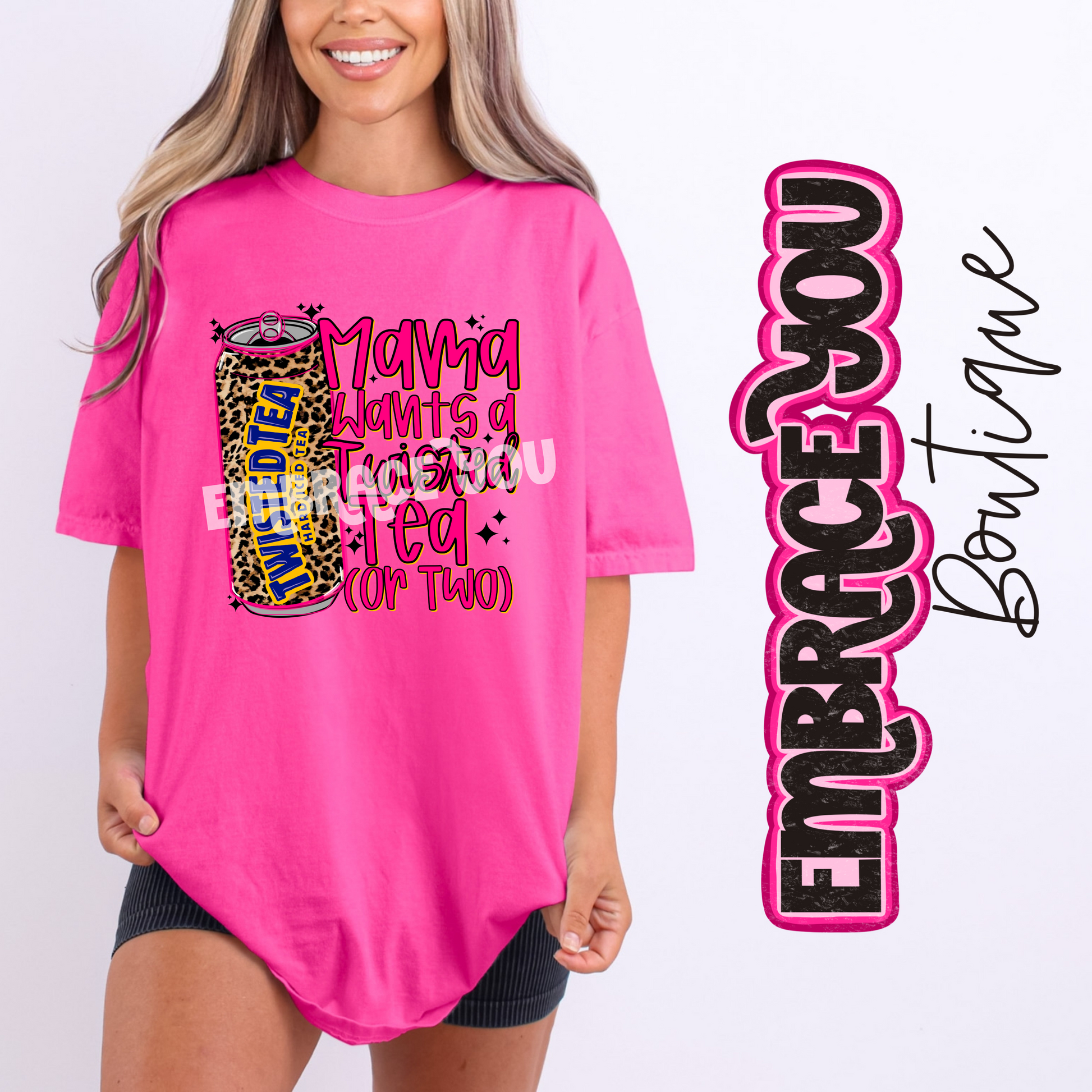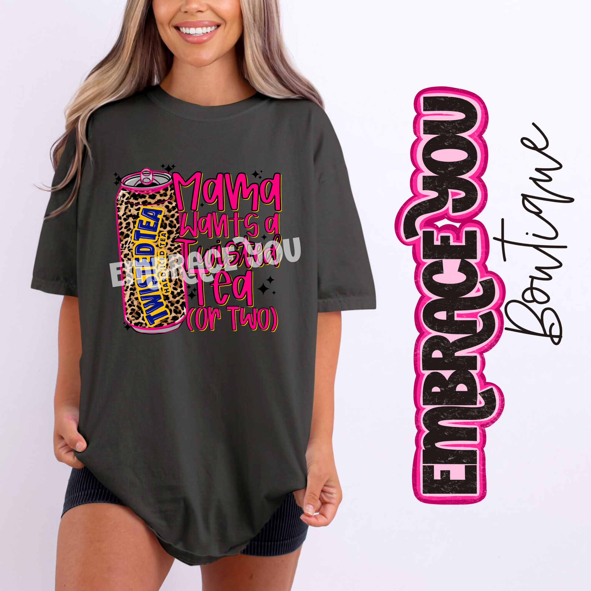 Show off your fun side with the Mama Needs A Twisted Tea Graphic Tee! Featuring a bold cheetah print and the iconic Twisted Tea vibe, this Comfort Colors shirt blends comfort with playful style. Perfect for relaxing days or casual outings, it’s your new go-to for effortless cool. Expect your tee to arrive within 1-2 weeks—get ready to embrace comfort and sass in one!