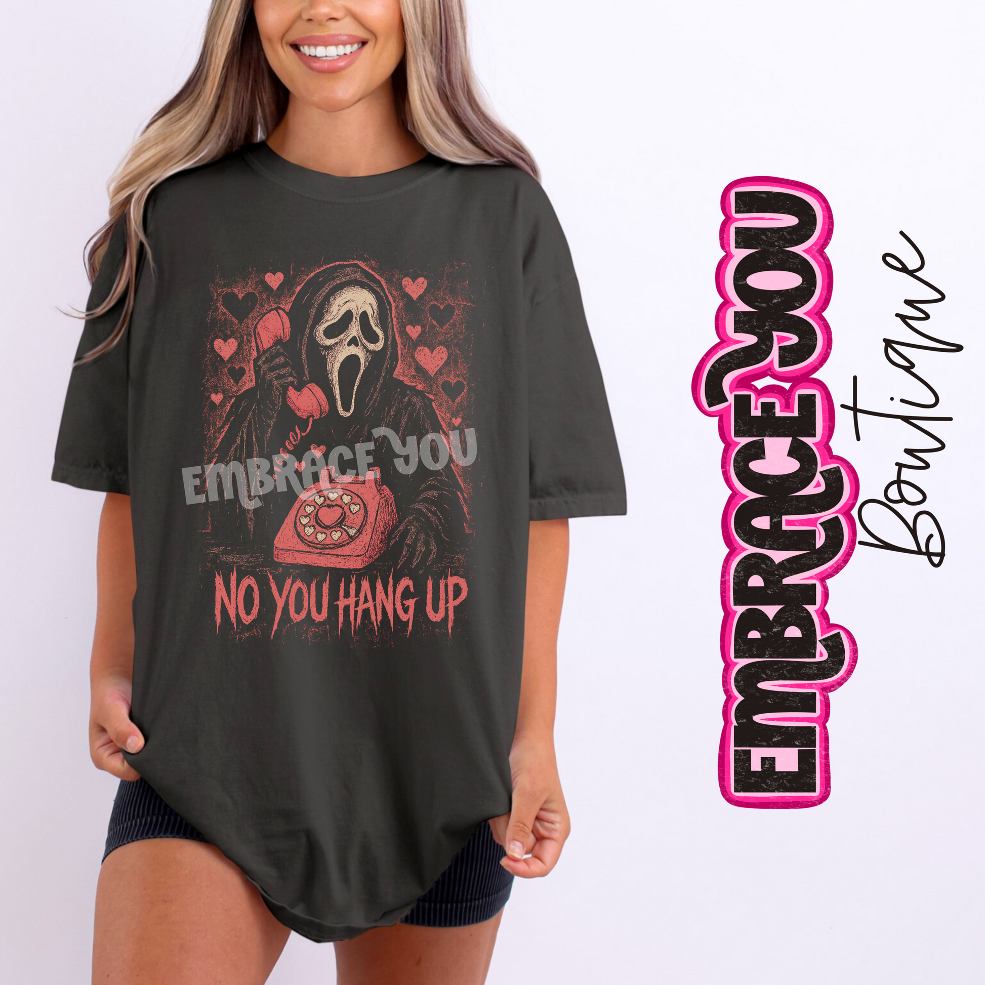 Get ready to spook in style with our No You Hang Up Ghostface Graphic Tee! Featuring a playful nod to Friday the 13th vibes and the iconic Ghostface, this tee is perfect for horror fans who love a little fun with their fright. Made for comfort and chilling good looks, it ships within 1-2 weeks—just in time to haunt your wardrobe.