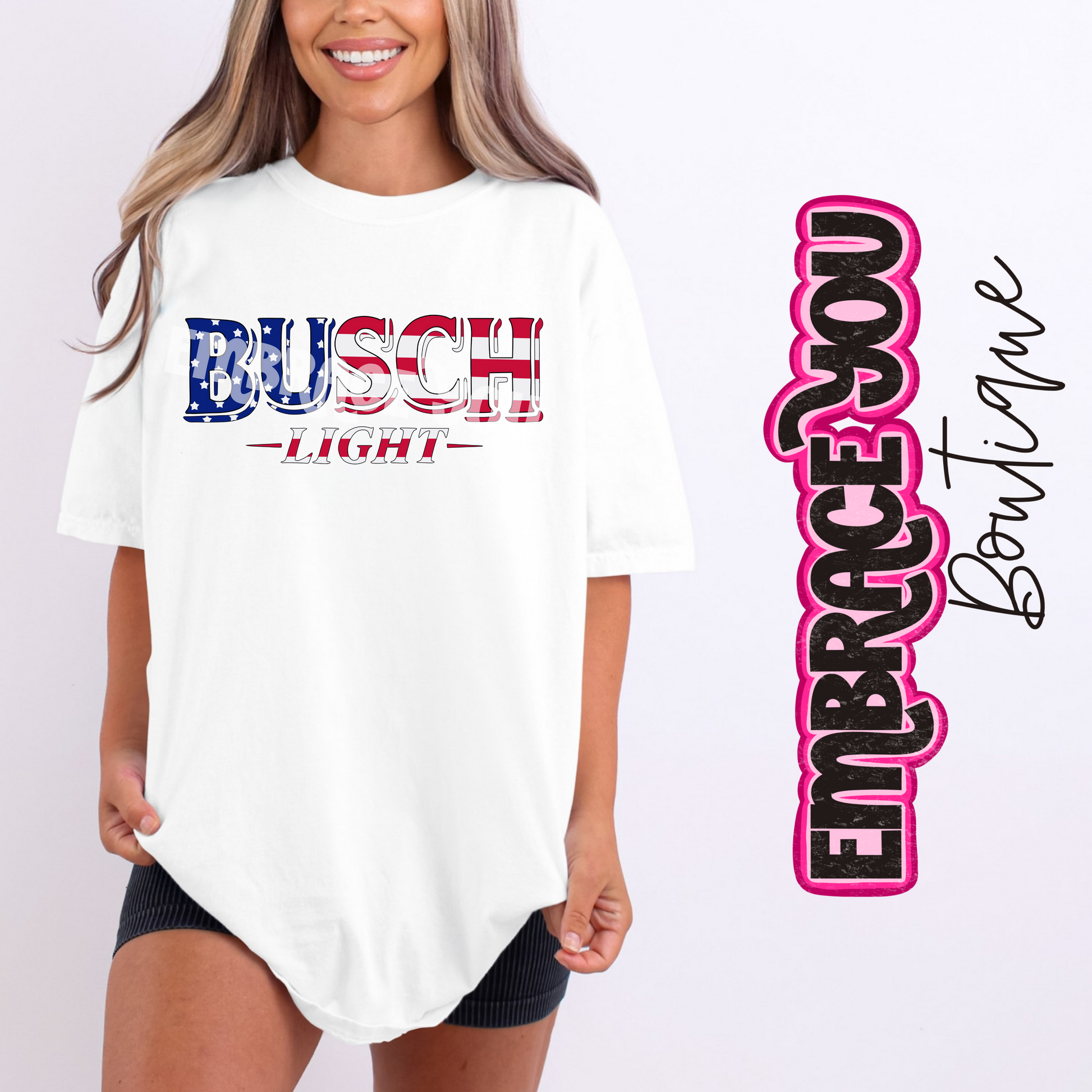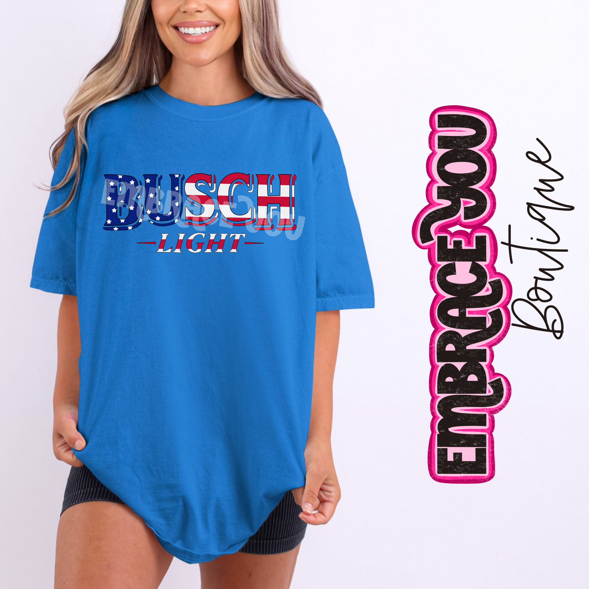 Get patriotic in style with our Stars & Stripes BL Graphic Tee! Featuring a unique design of stars and stripes, this graphic tee is perfect for any busch light fan. Made with comfort colors, you'll love the comfort and quality of this tee. Plus, with a quick 1-2 week turnaround time, you'll be able to rock this tee in no time!