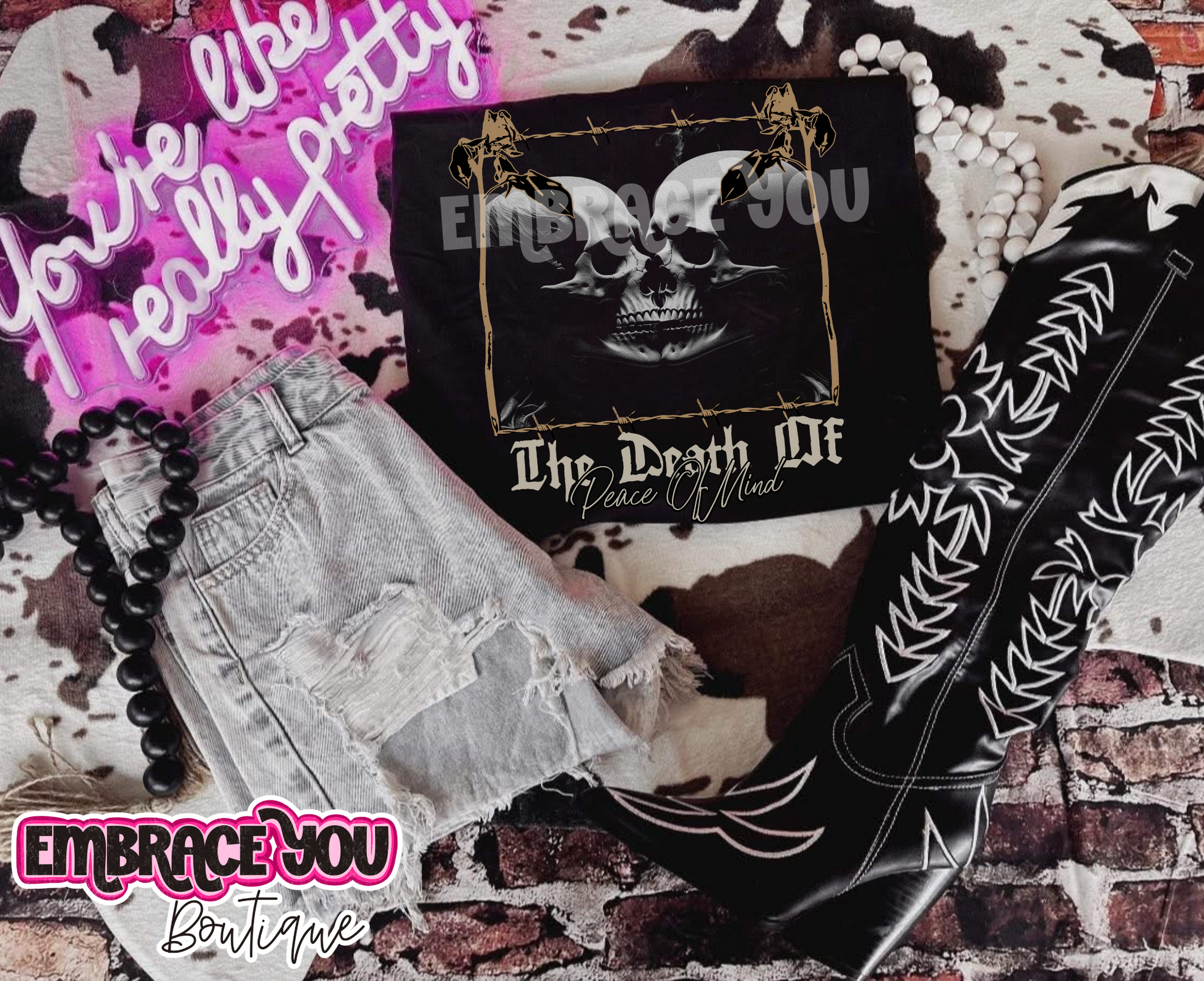 Show off your love for Bad Omens with The Death Of Peace Of Mind Graphic Tee! Featuring a bold skully design inspired by the band’s edgy vibe, this tee brings your favorite song lyrics to life in style. Perfect for rocking out or casual days, it’s a playful way to wear your music passion. Expect your new favorite tee delivered within 1-2 weeks—ready to turn heads and spark conversations wherever you go!