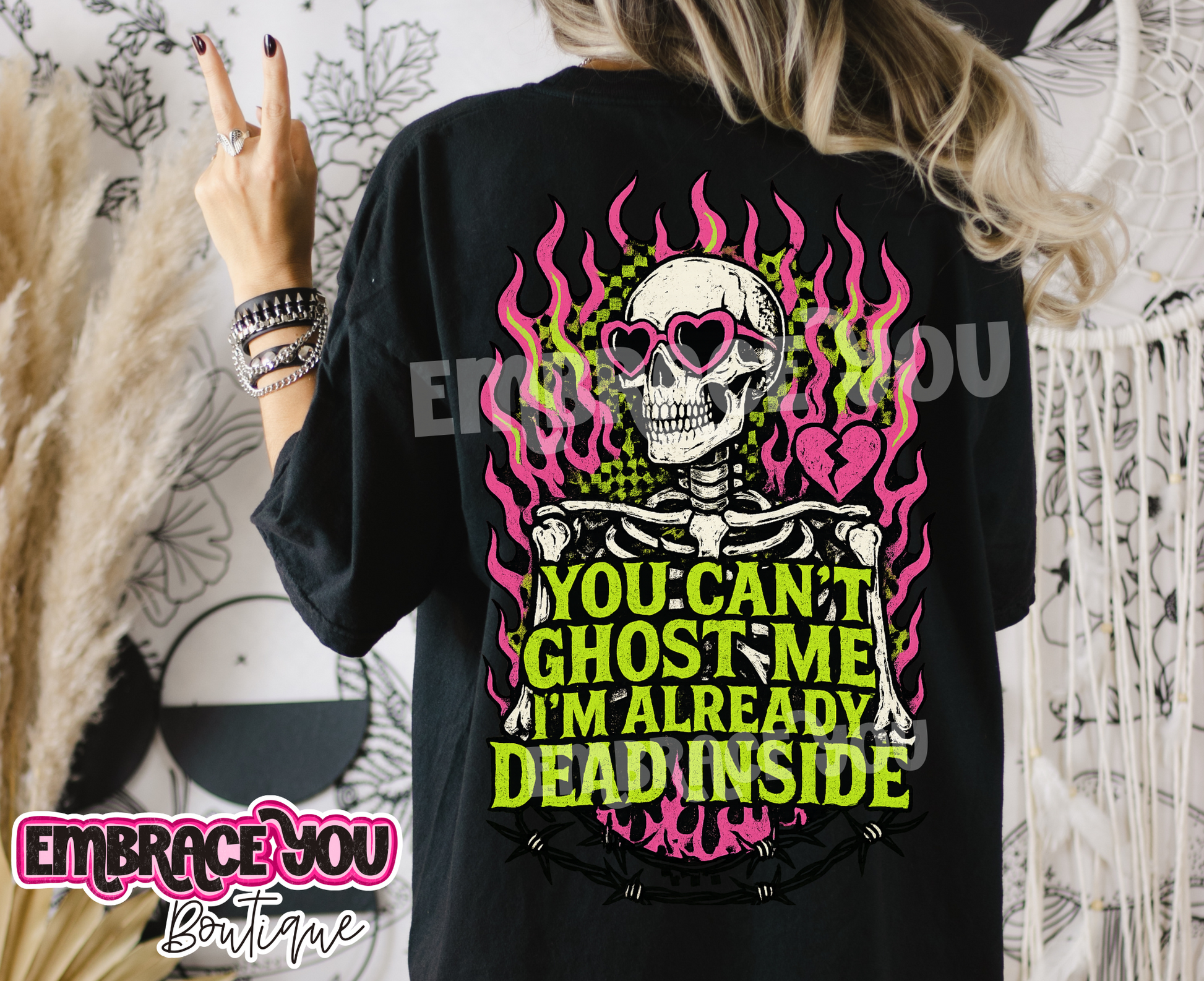 Show off your bold side with the You Can't Ghost Me Graphic Tee! This playful shirt delivers a fun message with a confident vibe, perfect for standing out in any crowd. Made for comfort and style, it ships within 1-2 weeks so you can start turning heads soon.